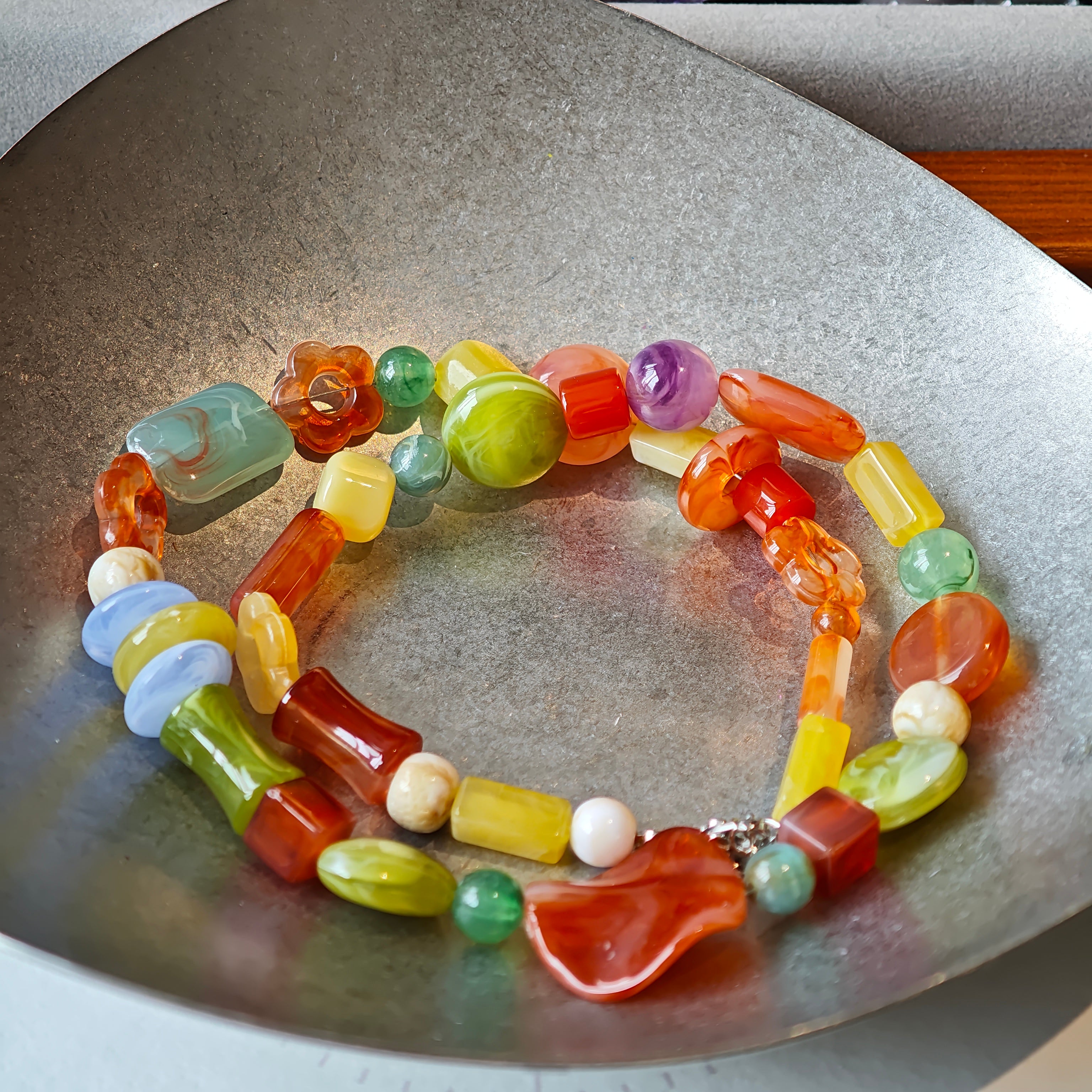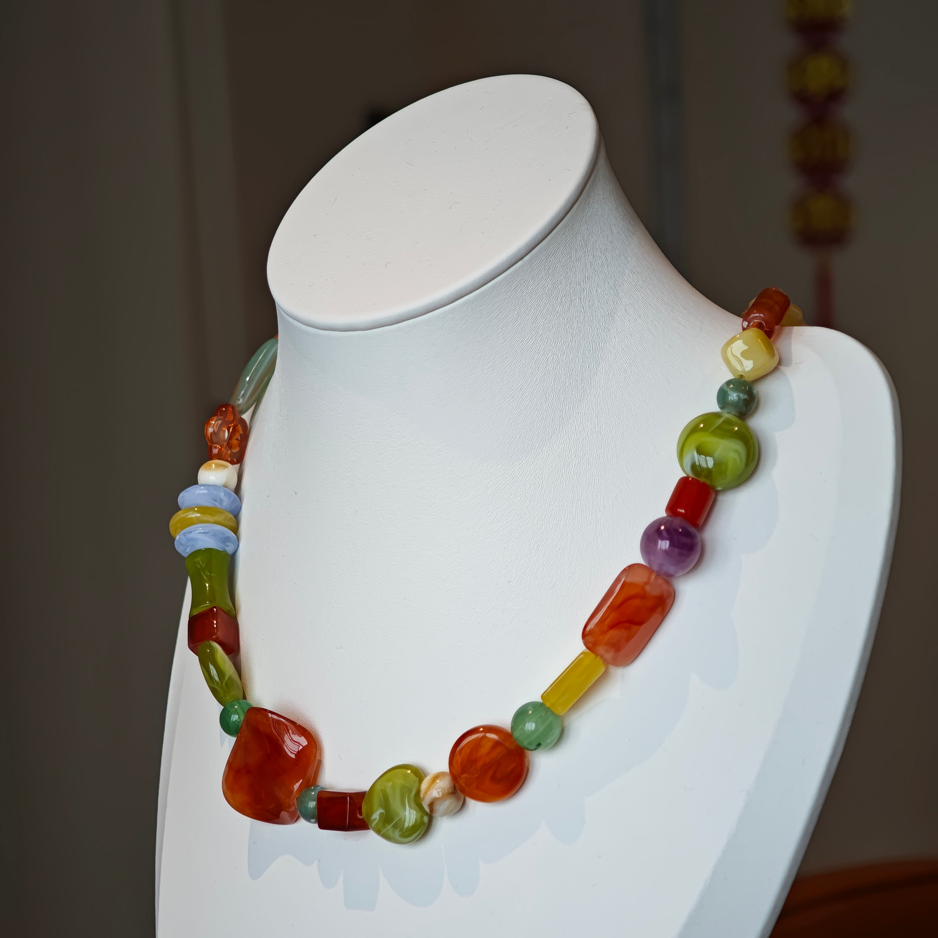 • Colorful necklace with candy necklace charm – bursts of luminous shades